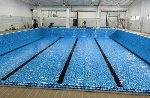 古塔学校钢结构游泳池半国标胶膜游泳池25M*12M项目